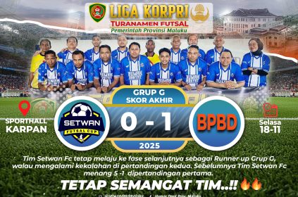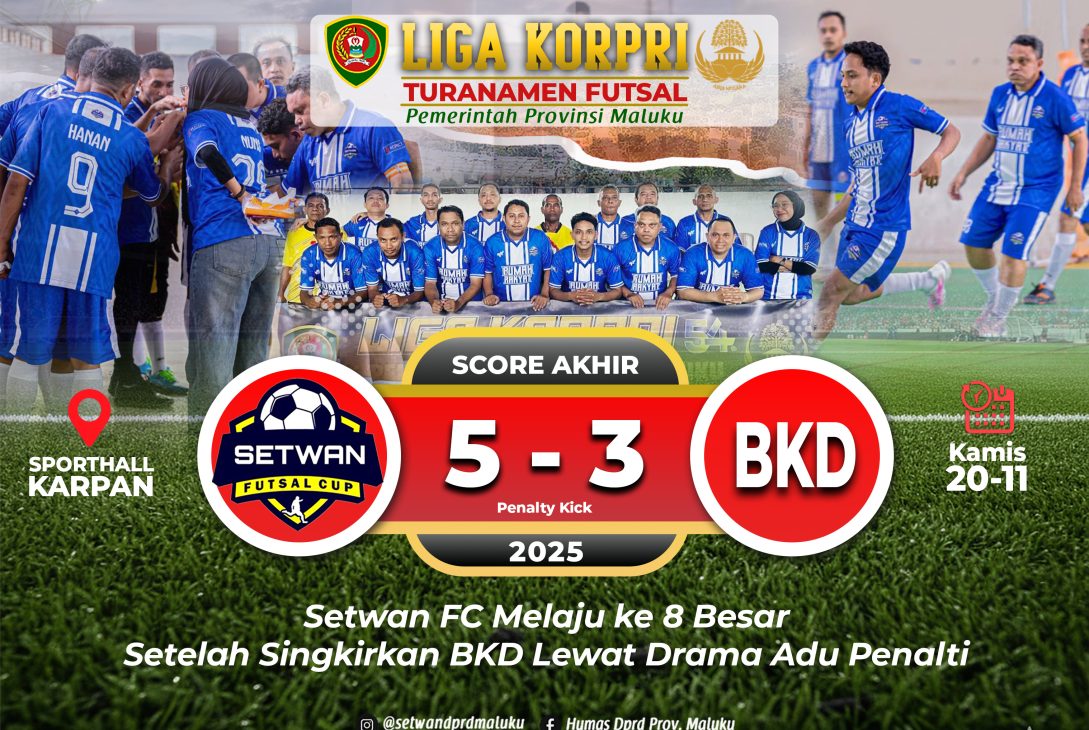 AMBON, HarfMedia.Id – Tim Sekretariat Dewan (Setwan FC) berhasil mengamankan tempat di babak delapan besar (perempat final) setelah memenangkan pertandingan sengit melawan Tim Badan Kepegawaian Daerah (BKD) dalam drama adu penalti.