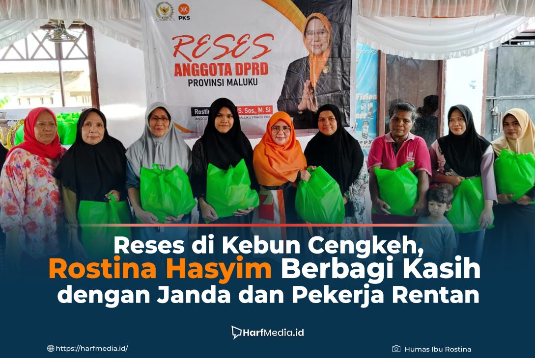 Ambon, HarfMedia.Id — Anggota DPRD Provinsi Maluku sekaligus Ketua Fraksi PKS DPRD Provinsi Maluku, Rostina Hasyim, melaksanakan kegiatan reses di kawasan Kebun Cengkeh, Selasa (30/12) Kegiatan ini dirangkaikan dengan aksi berbagi kasih kepada janda, buruh cuci, dan tukang ojek yang bermukim di sekitar BTN Kebun Cengkeh, Lorong Pandan, dan wilayah sekitarnya.