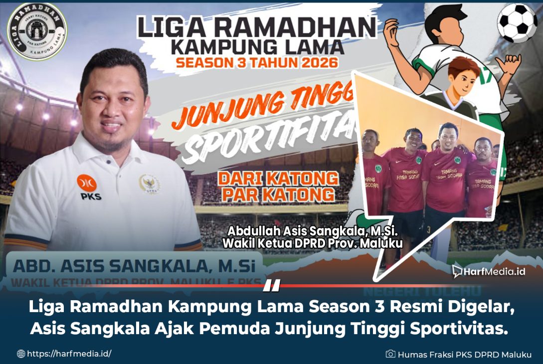 Tulehu, HarfMedia.Id – Liga Ramadhan Kampung Lama Season 3 Tahun 2026 resmi digelar di Negeri Tulehu, Kabupaten Maluku Tengah, Sabtu (21/02) pembukaan berlangsung dilapangan Kampung Lama Negeri Tulehu. Kegiatan tahunan yang menjadi ajang silaturahmi dan pembinaan generasi muda ini kembali mendapat dukungan dari Wakil Ketua DPRD Provinsi Maluku Abdullah Asis Sangkala.